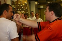 22.11.2007 Lehrgang beim Tiger-Team in Prag/CZ Unser Trainer, Sven Barchfeld, fuhr Ende Oktober zum vierten Mal nach Prag, um dort Modern Arnis zu unterrichten. Während die ersten drei Lehrgänge in der Sportschule Kosagym stattfanden, lud diesmal Tomas Severa in sein Dojo des 'Tiger-Team Prague' ein. Die insgesamt 24 Teilnehmern/innen wurden in den Themen Tapi-Tapi, Konterkonzepte, Messer Techniken und Drills sowie waffenlose Selbstverteidigung und Drills unterrichtet. Auch bei diesem Lehrgang ging es neben den Techniken an sich auch um Möglichkeiten, wie man diese interessant und effektiv trainieren kann. |
